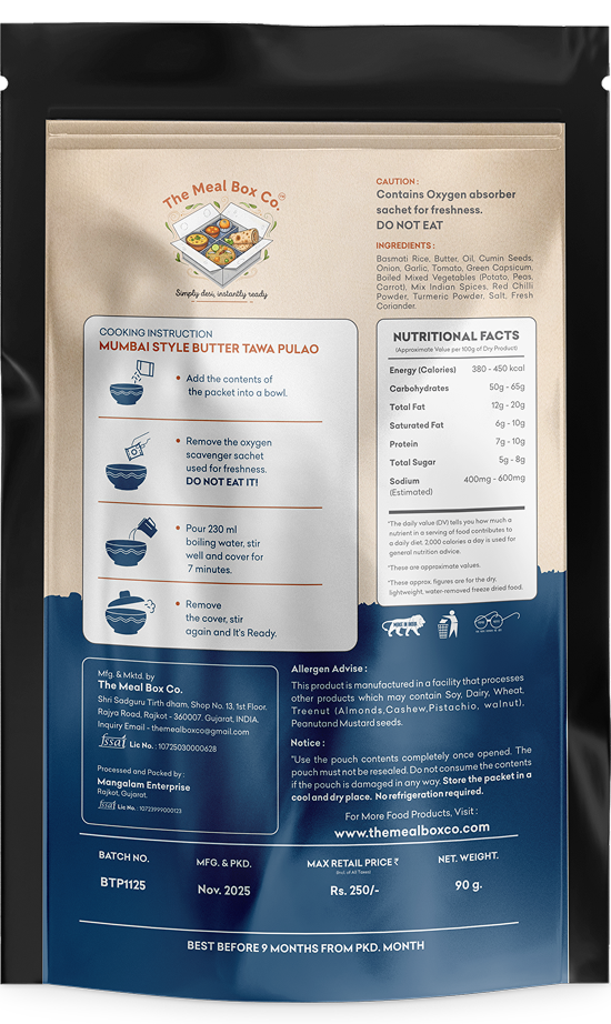 Served straight from the tawa, steaming and crowned with fresh coriander and a squeeze of lime, it arrives with the attitude of a late-night vendor who knows he’s the king. One bite and you taste the footpaths of Bombay: bold, buttery, slightly spicy, totally addictive. Pair it with cold raita or eat it straight with your hands – either way, this is the pulao that makes Mumbai pause and smile.