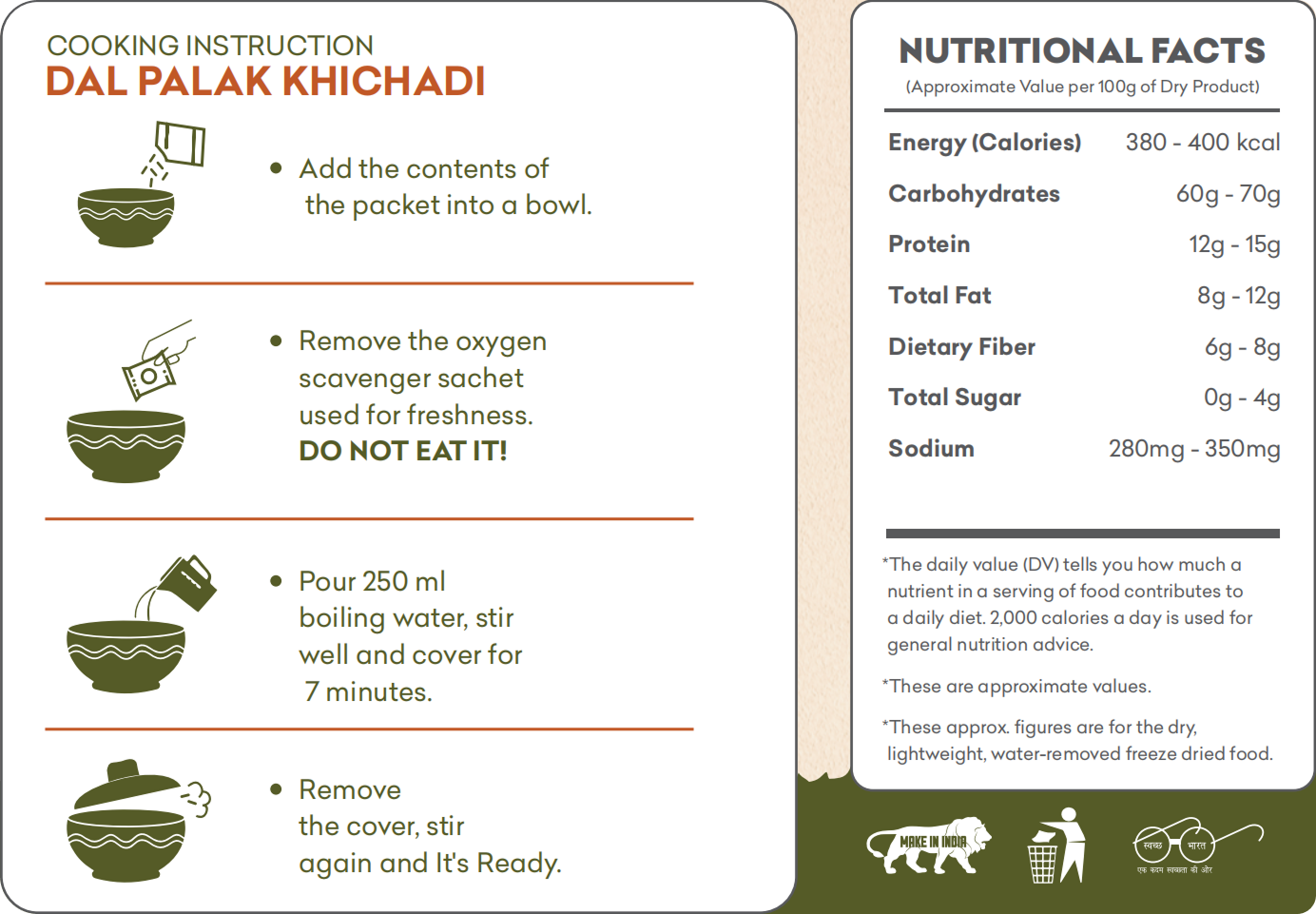 | (Approximate Value per 100g of Dry Product) | |