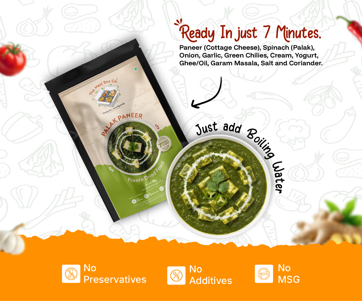 Paneer (Cottage Cheese), Spinach (Palak), Onion, Garlic, Green Chilies, Cream, Yogurt, Ghee/Oil, Garam Masala, Salt and Coriander.